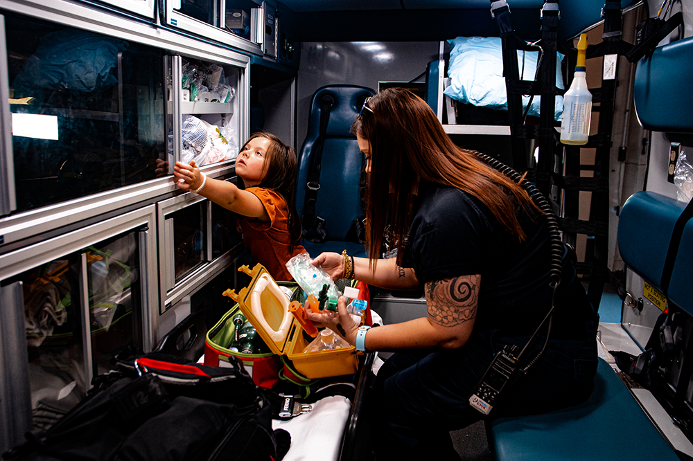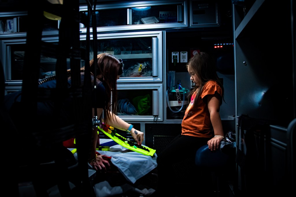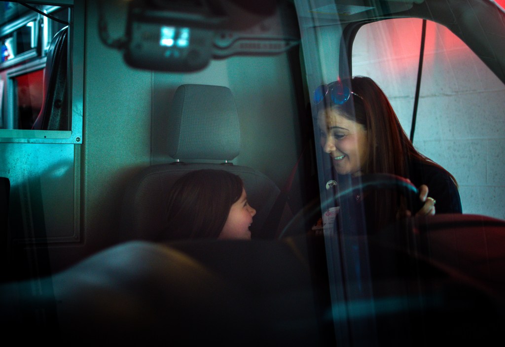 I got the pleasure of meeting Lea a second time while taking pictures for her mom’s edition of Past the Patch. With a bulky camera in my lap, sitting across from a bright eyed little girl underneath the sterile lights of a lively ambulance, I asked her what she wanted to be when she grew up. With a beaming smile that clearly mirrored that of her mother’s, she didn’t miss a beat before proudly boasting, “I want to be an EMT.”