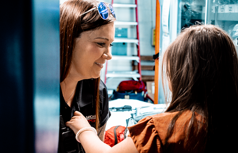 But as she begun her healing journey, Lynn discovered another way to reclaim her agency: In spring of 2022, an advertisement for Lancaster EMS’ EMT Academy popped up on Facebook. The job, she knew, was a chance to give back to her community, and so she began discussing the idea with her wife. With her partner’s support, Lynn decided to pursue the opportunity–but it wouldn’t come easy. “I fought hard to obtain my EMT certification with the federation due to the consequences of my past,” Lynn–like many others in recovery–found herself being haunted by a history she gave everything to overcome; and judged by a society who preached rehabilitation but still had a tendency to look at users as statistics as opposed to real people. Thankfully, she found someone in the education department at Lancaster EMS who had her back, and in the fall, she officially began her career in emergency medicine.