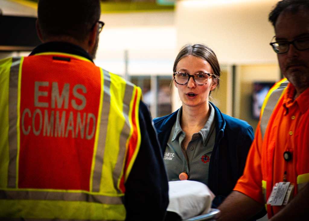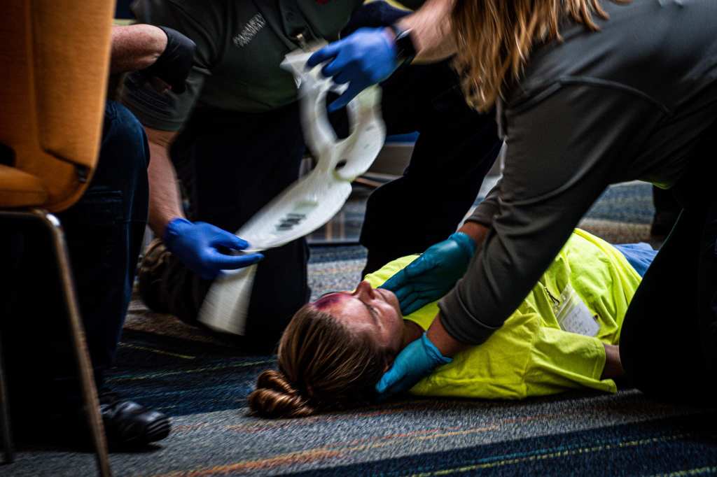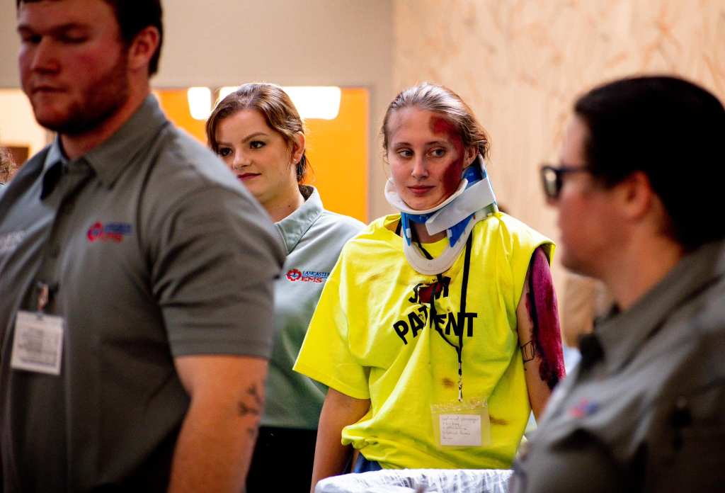 Yesterday, as part of my role of Marketing Director at Lancaster EMS, I got to photograph a mass casualty simulation put on by the PA College of Health Sciences. Our EMT Academy students participated as patients while paramedic students were tasked with triaging and transporting patients, responding to the fictitious scenario—a truck crashing into a chemistry lab—as they would in a real life situation.