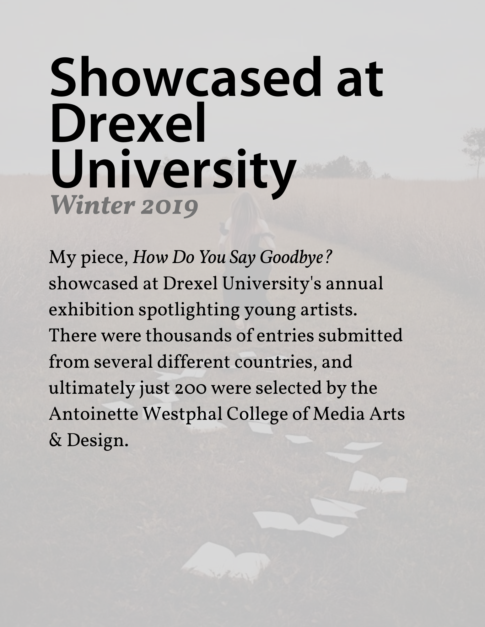 Photography of course is a close second, arguably being the medium I have the most experience in. I was sixteen when I did my first photoshoot. The experience stuck with me and I never put my camera back down. My earlier work consists more of creative portraits but I now gravitate towards documentary work. In addition to that, I own an operate a small photo business, Gray Sky Portraits, on the side doing more traditional portrait work. On occasion, I also fill in as a second shooter for a wedding photographer based in Ephrata, PA.